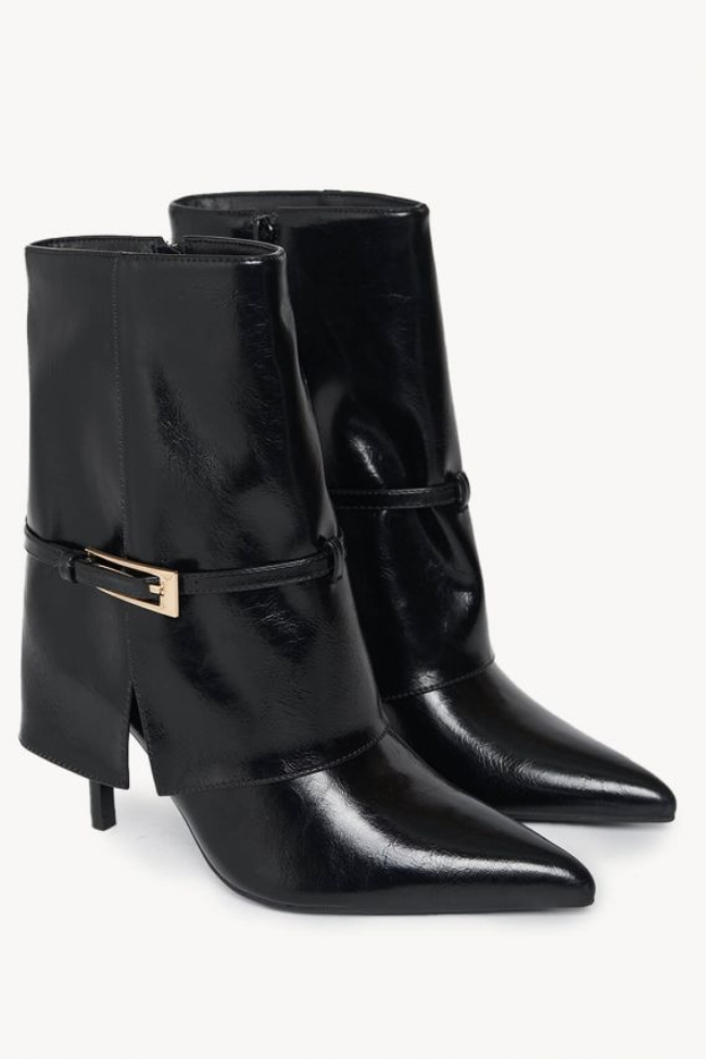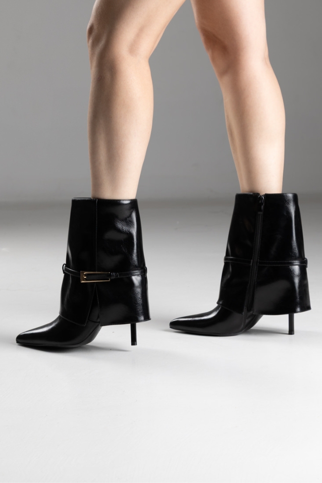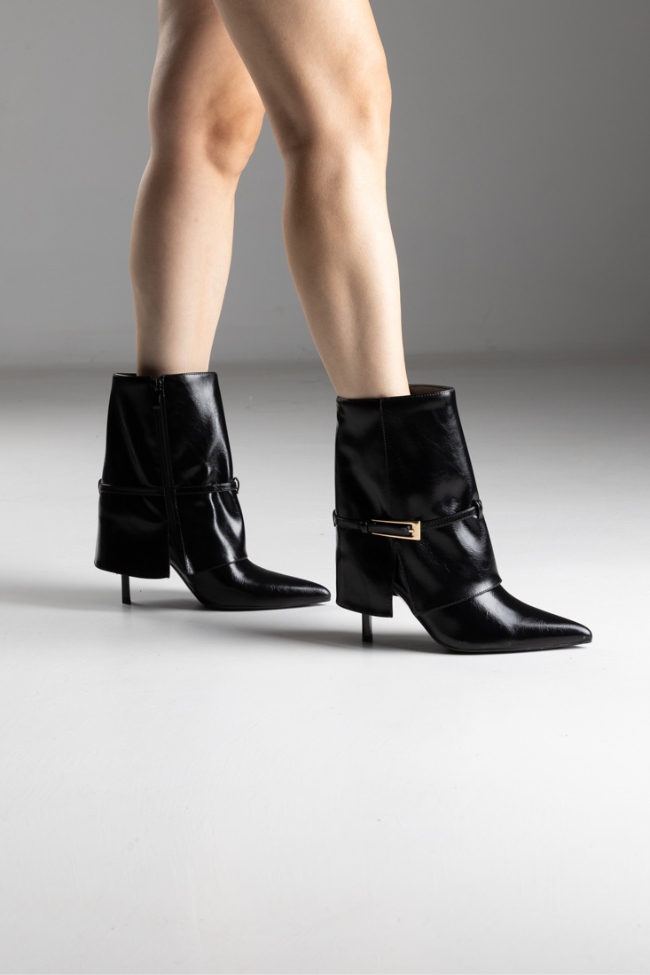 Μποτάκια με Ψηλό Τακούνι και Μεταλλική Αγγράφα – Μαύρο