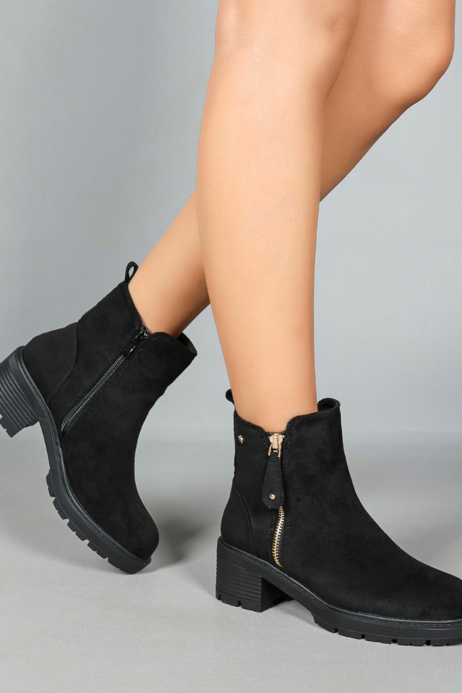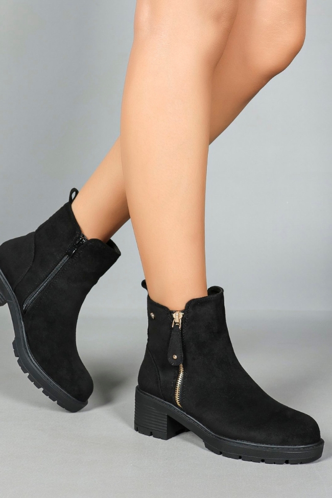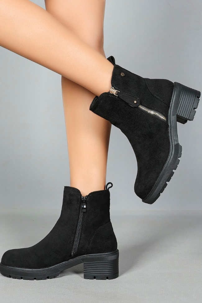 Μποτάκια suede με διακοσμητικό φερμουάρ – Μαύρο