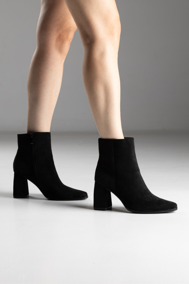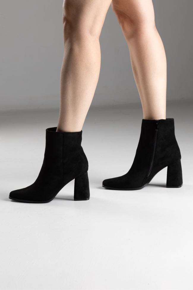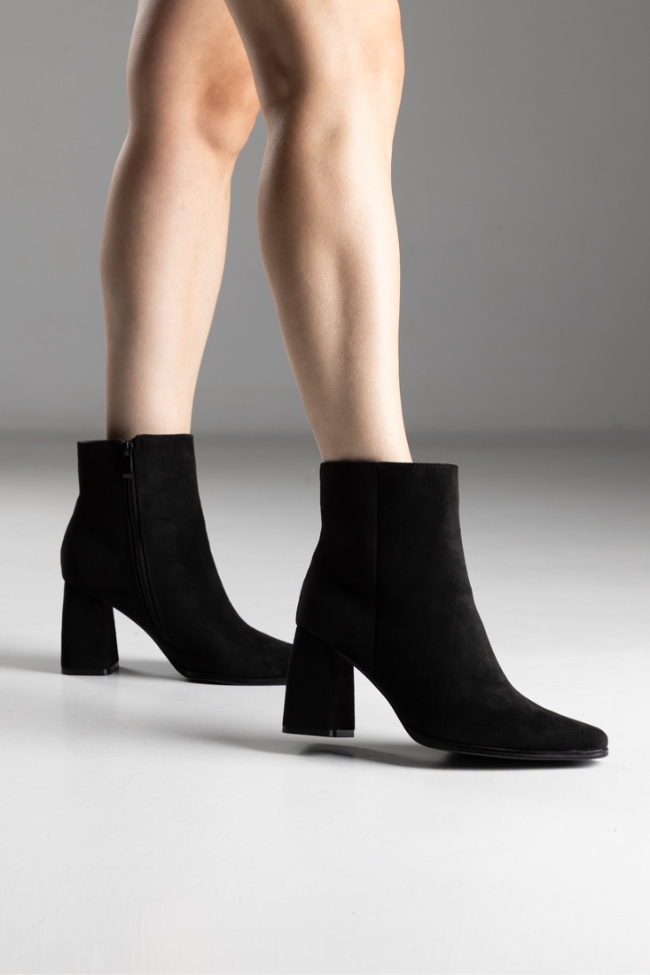 Μποτάκια suede μυτερό με χοντρό τακούνι – Μαύρο