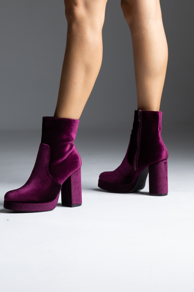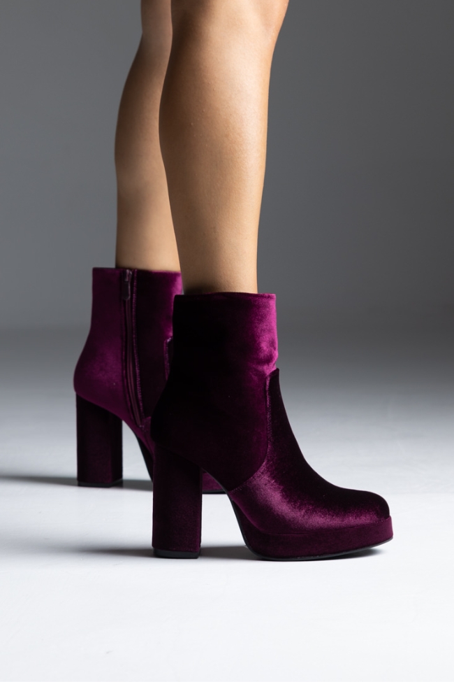 Μποτάκι βελούδο με χοντρό τακούνι – Μπορντώ