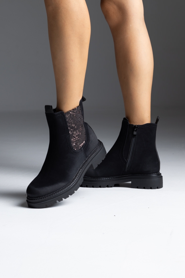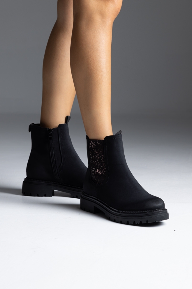 Μποτάκι δερματίνη με διακοσμητικό στοιχείο στο πλάι – Μαύρο