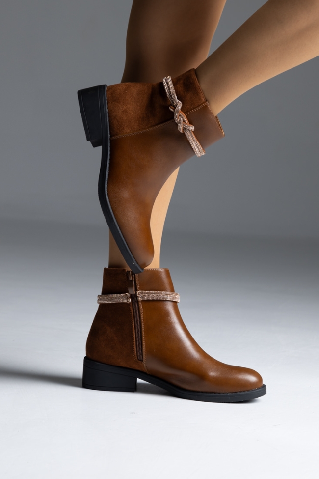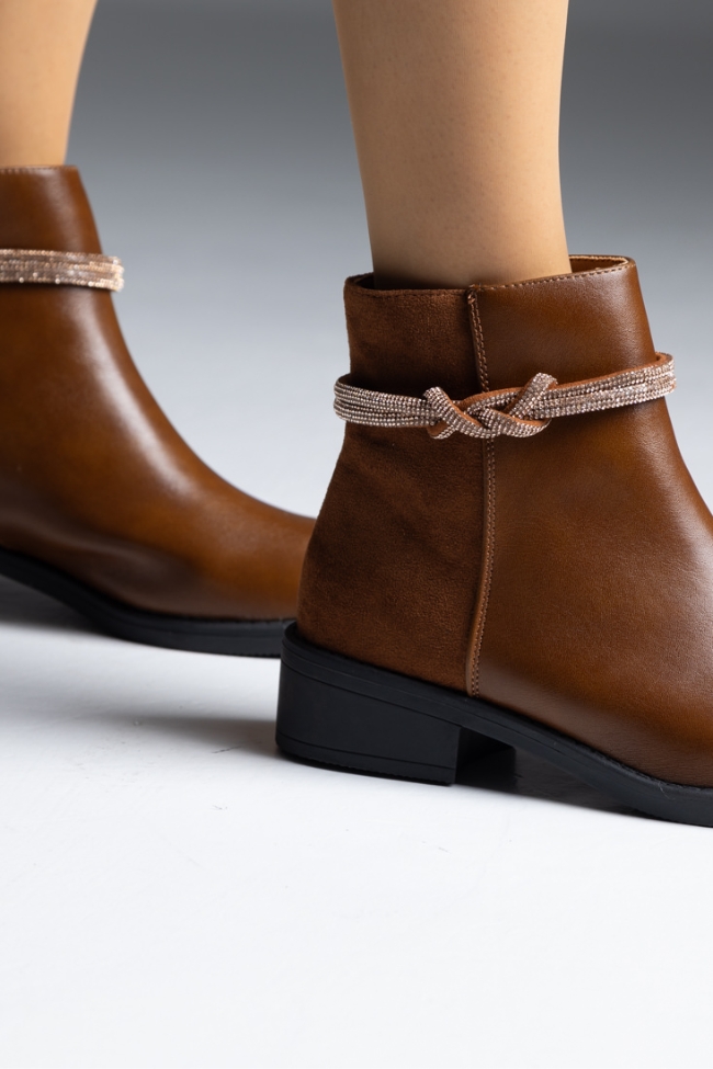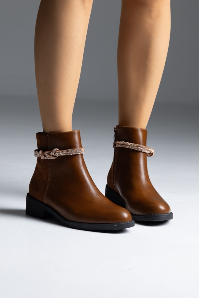 Μποτάκι δερματίνη με λουράκι strass – Κάμελ