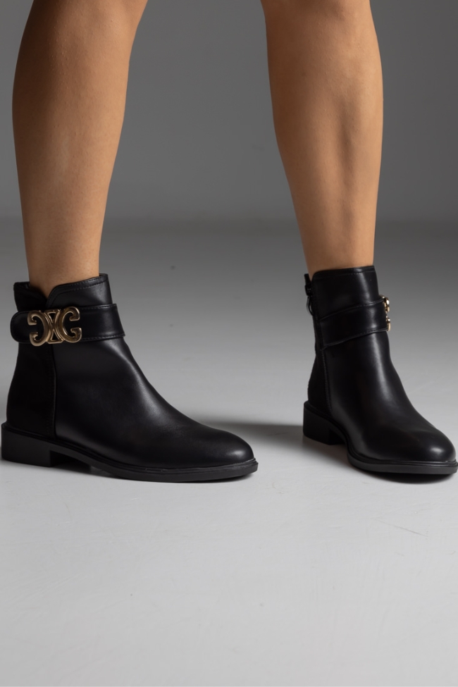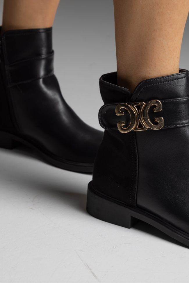Μποτάκι δερματίνη με χρυσό στοιχείο – Μαύρο
