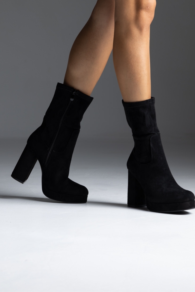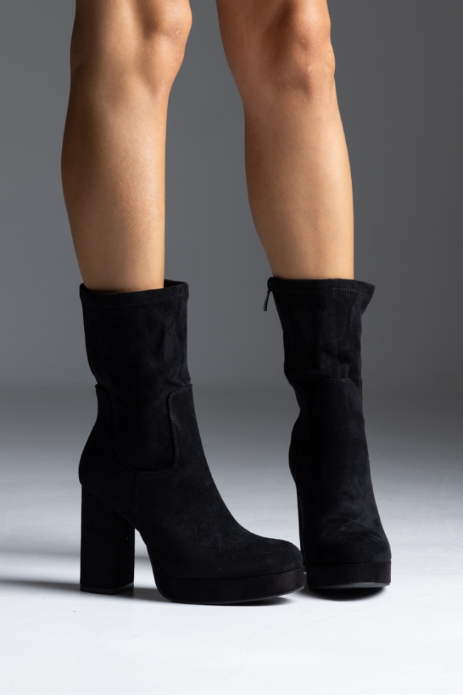 Μποτάκι suede με χρυσό στοιχείο – Μαύρο