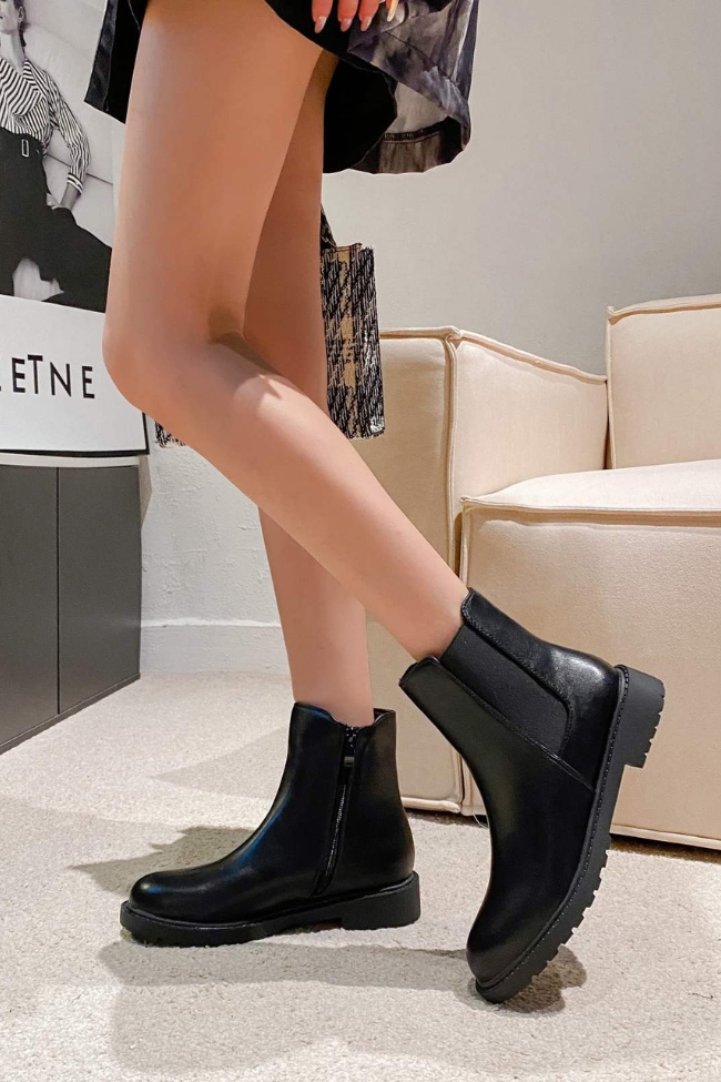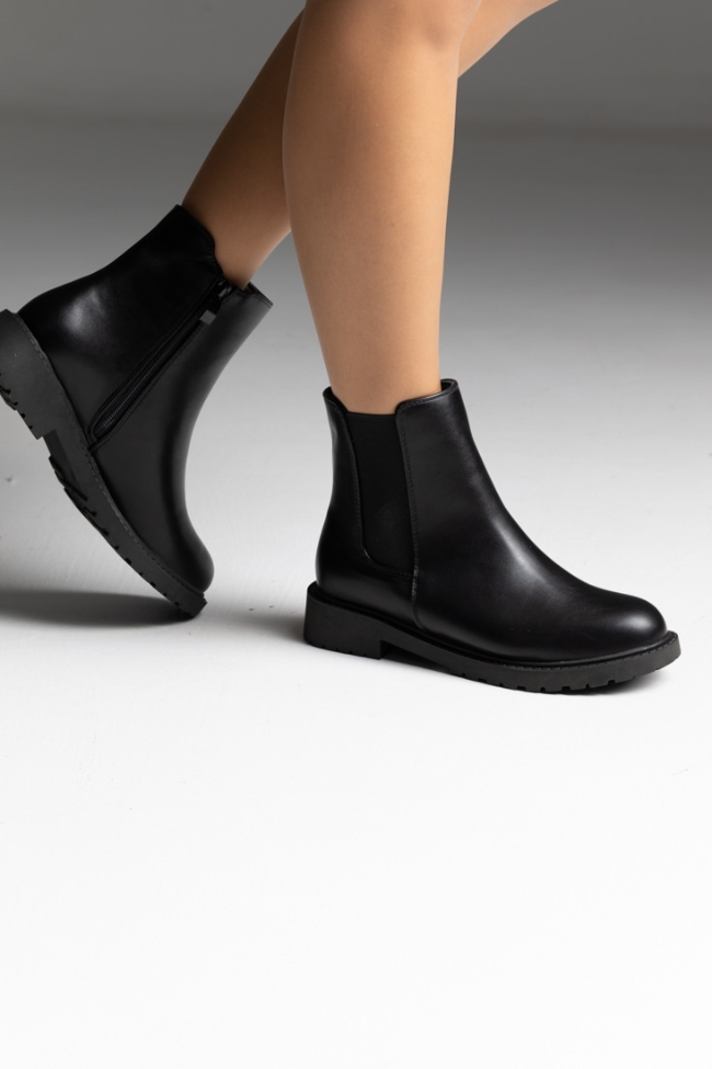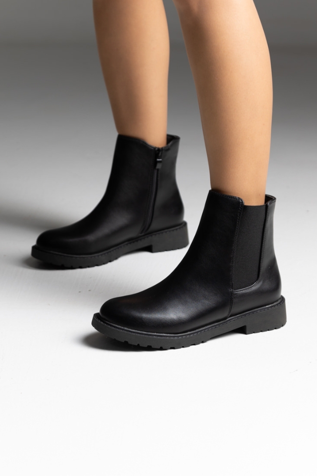 Μποτάκι με δερμάτινο πάτο και διακοσμητικό λάστιχο στο εξωτερικό μέρος – Μαύρο