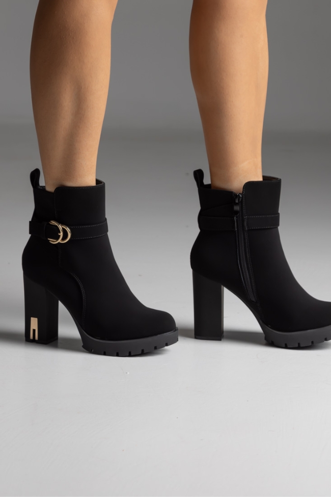 Μποτάκι με χρυσό στοιχείο και τακούνι με χρυσή λεπτομέρεια – Μαύρο