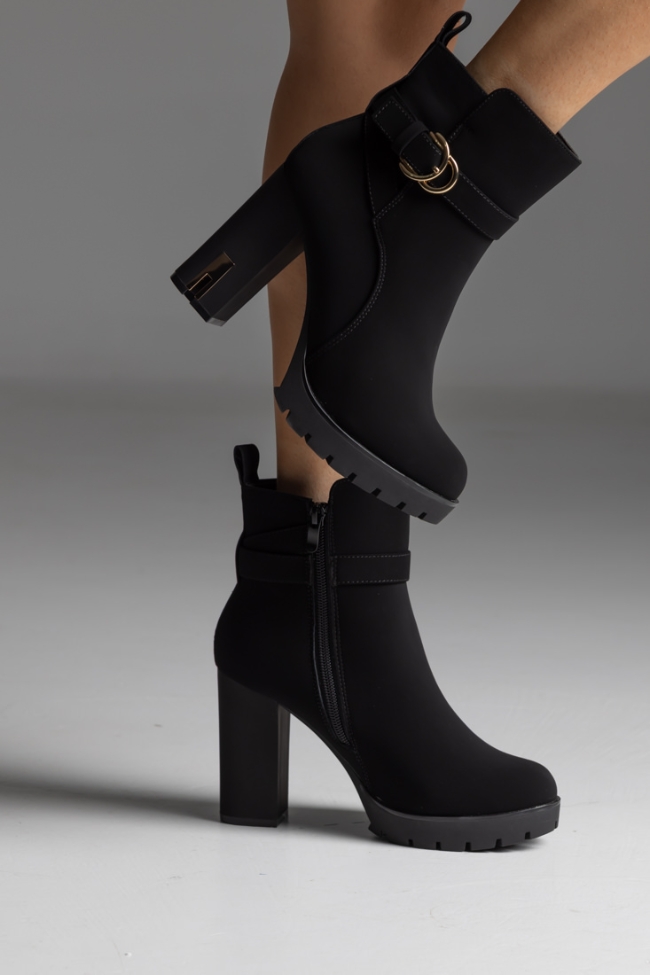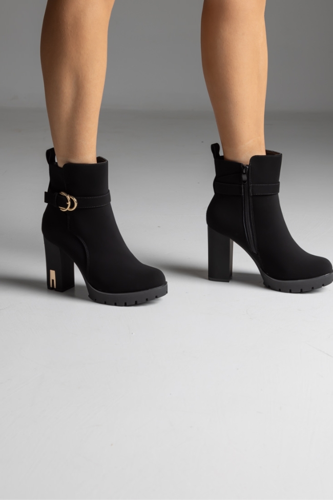 Μποτάκι με χρυσό στοιχείο και ψηλό χοντρό τακούνι με χρυσή λεπτομέρεια