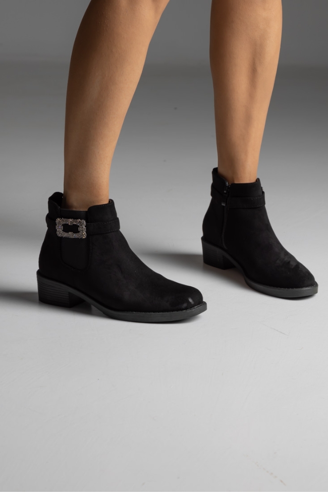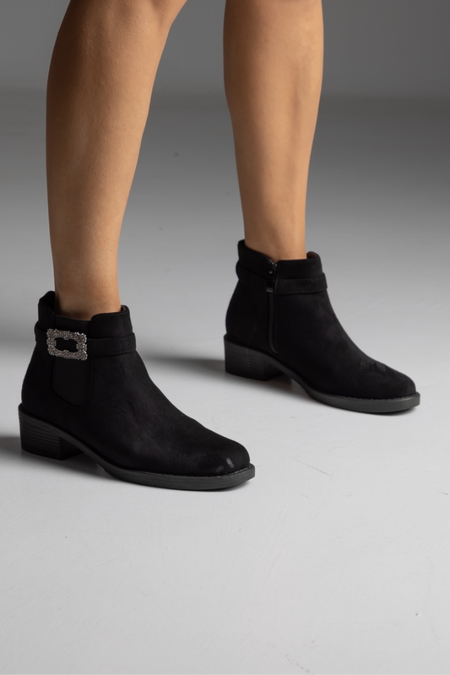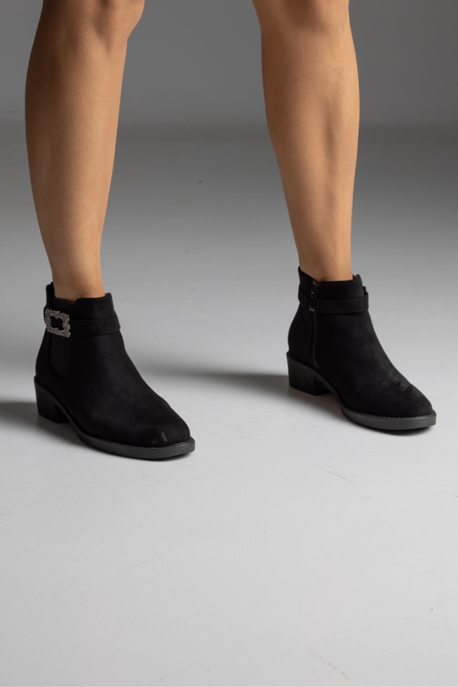 Μποτάκι suede με αγκράφα strass και λάστιχο – Μαύρο