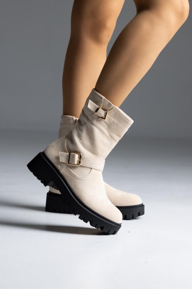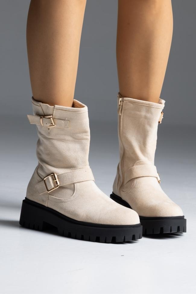 Μποτάκι suede με αγκράφες – Μπέζ