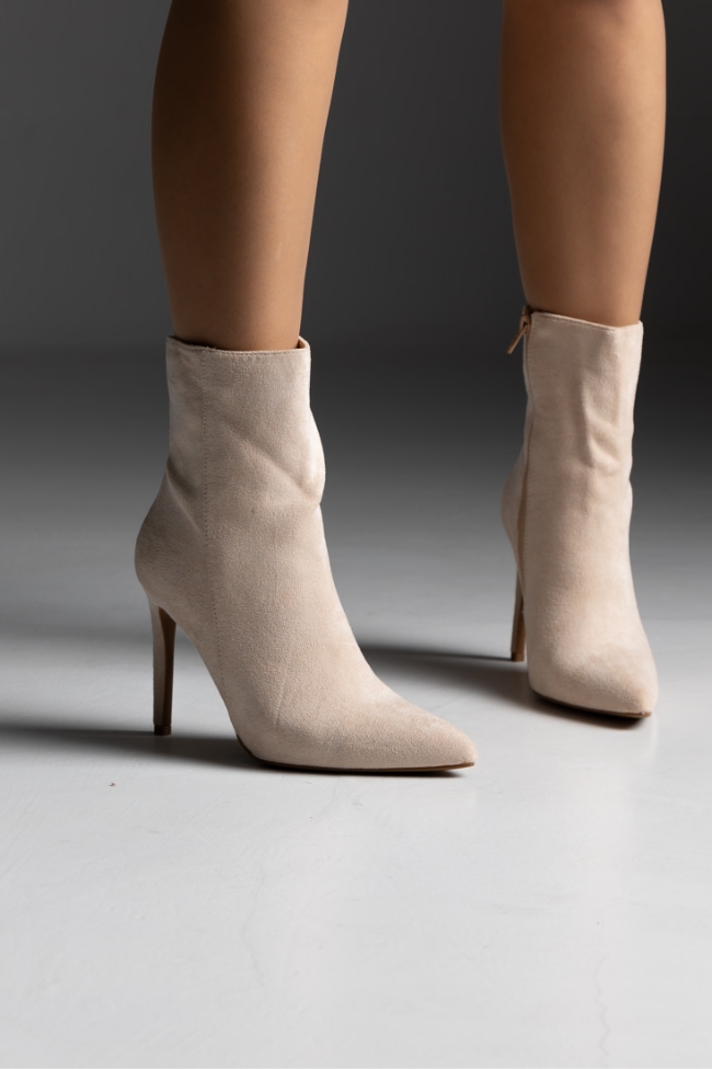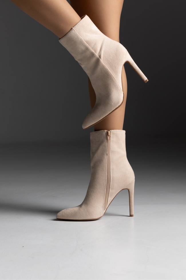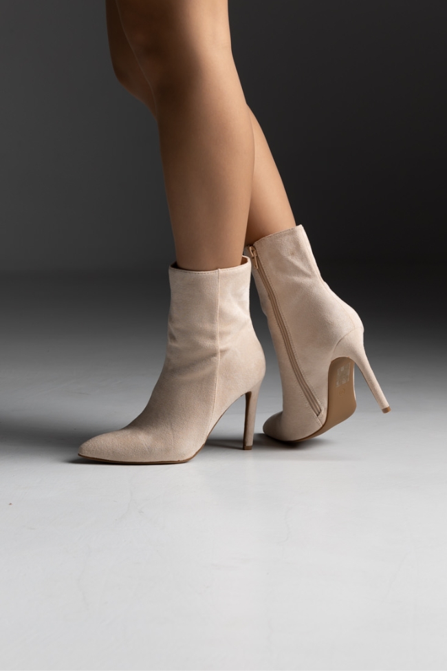 Μποτάκι suede μυτερό με λεπτό τακούνι – Μπέζ