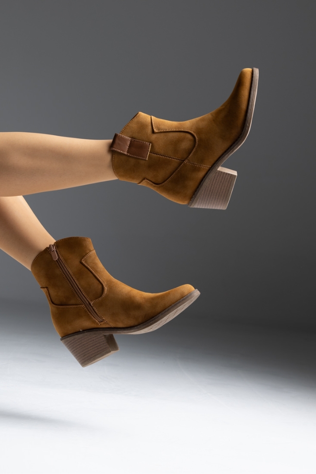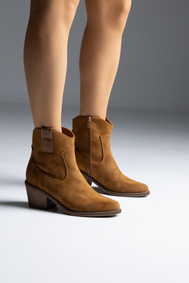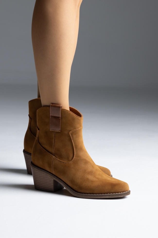 Μποτάκι suede cowboy με χαμηλό τακούνι – Κάμελ