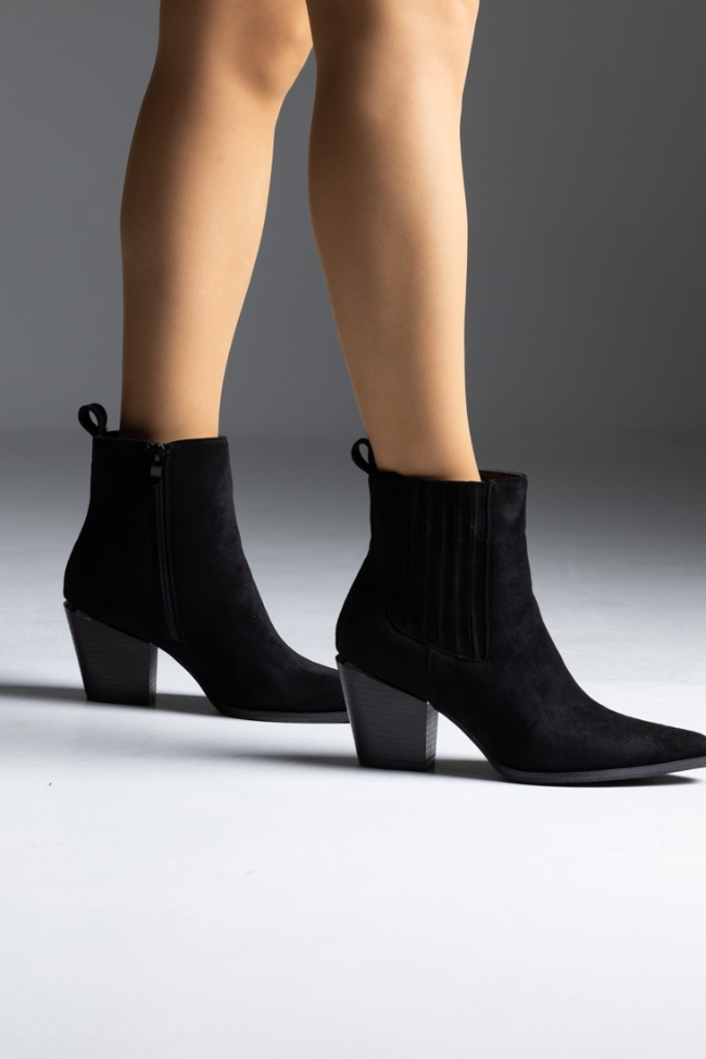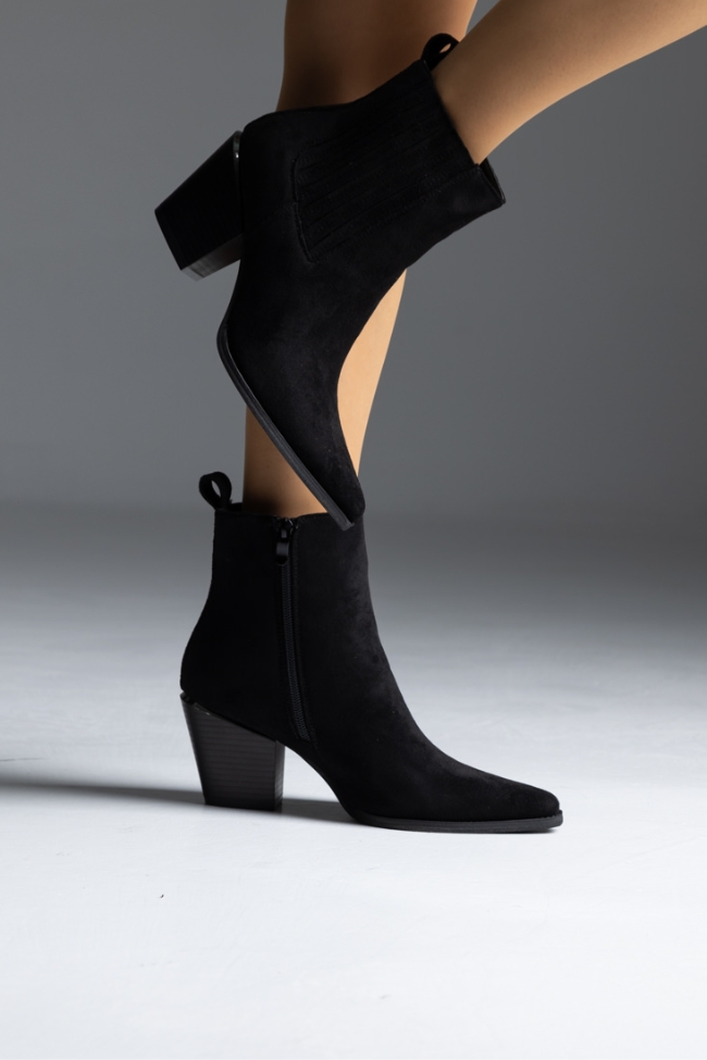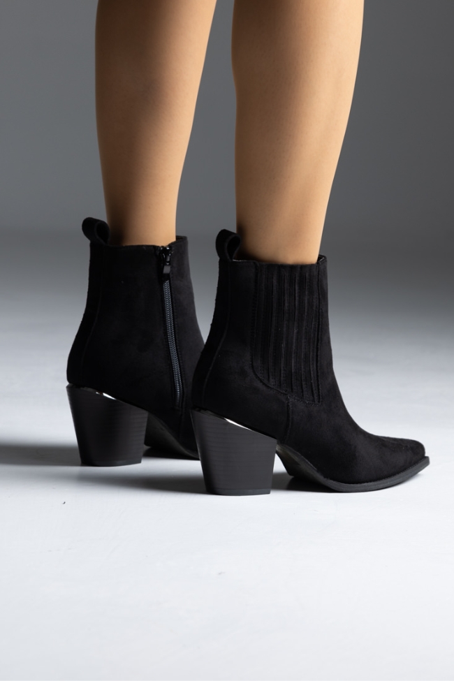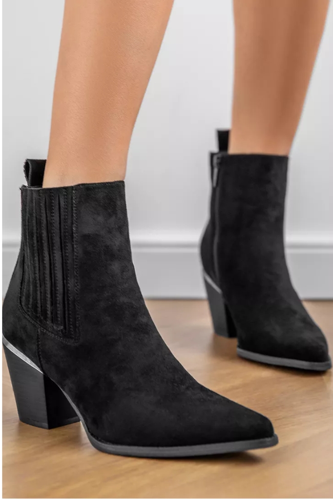 Μποτάκι suede cowboy με χαμηλό τακούνι και μεταλλικό στοιχειο – Μαύρο