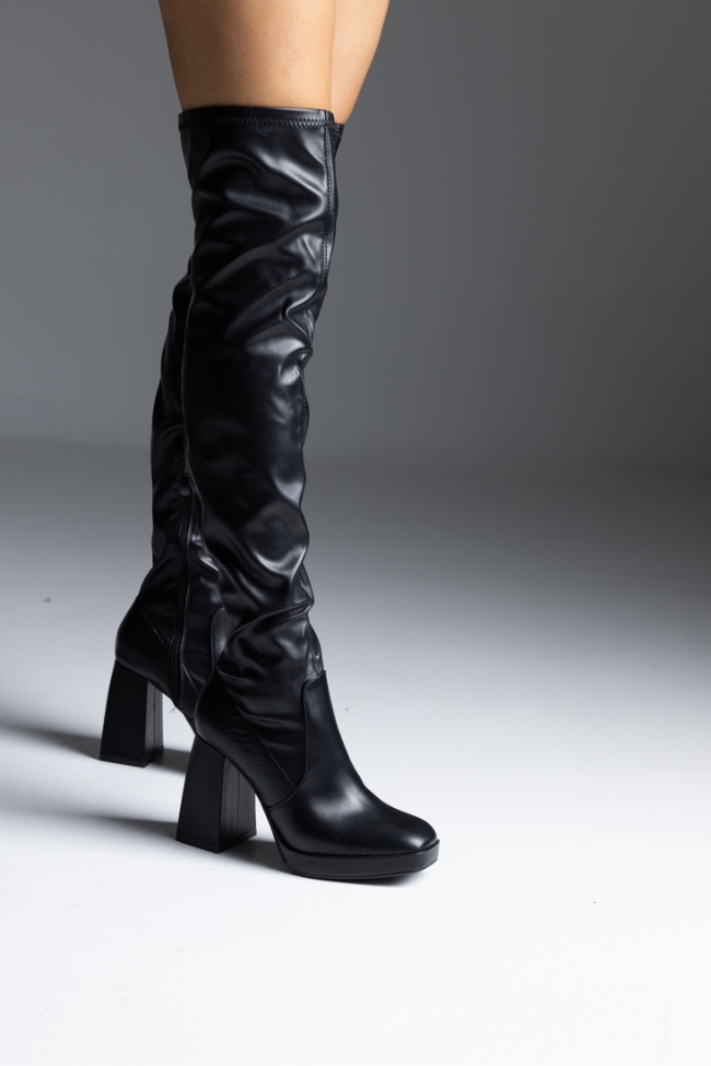 Μπότα δερματίνη με χοντρό τακούνι over the knee.