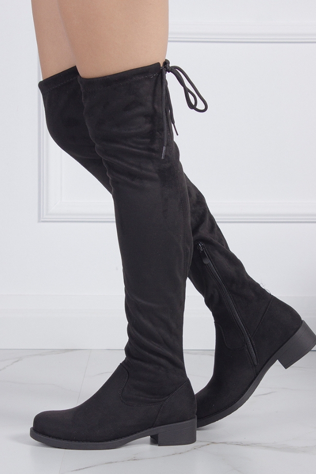 Μπότα suede flat over the knee με κορδόνι στο τελείωμα – Μαύρο