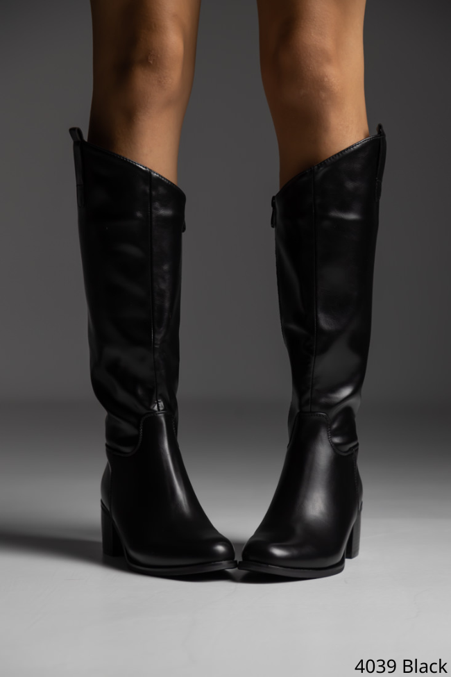 Μπότα με χαμηλό χοντρό τακούνι και στρογγυλή μπροστά – Μαύρο