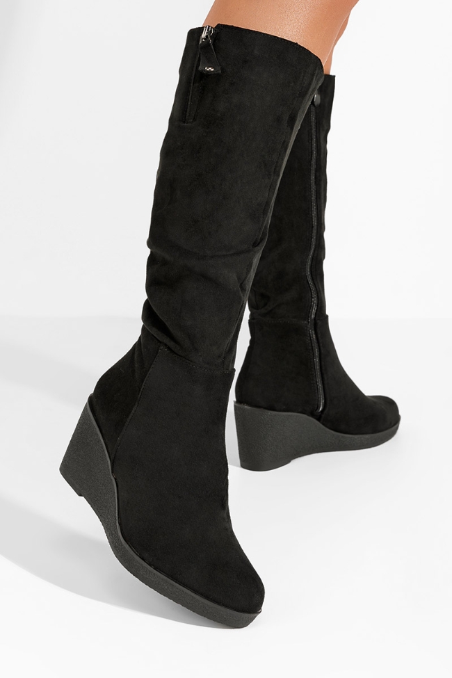 Μπότα suede με πλατφόρμα τακούνι και διακοσμητικό φερμούαρ – Μαύρο