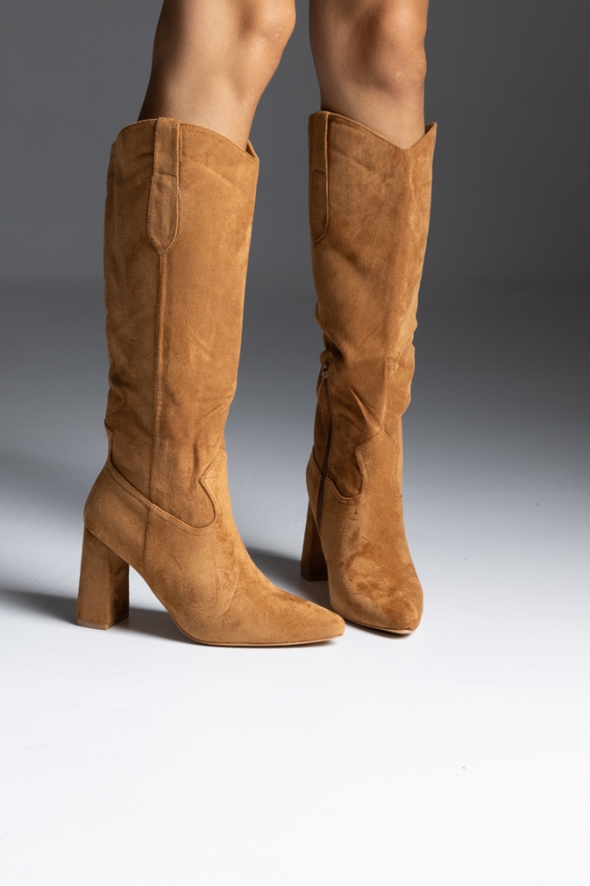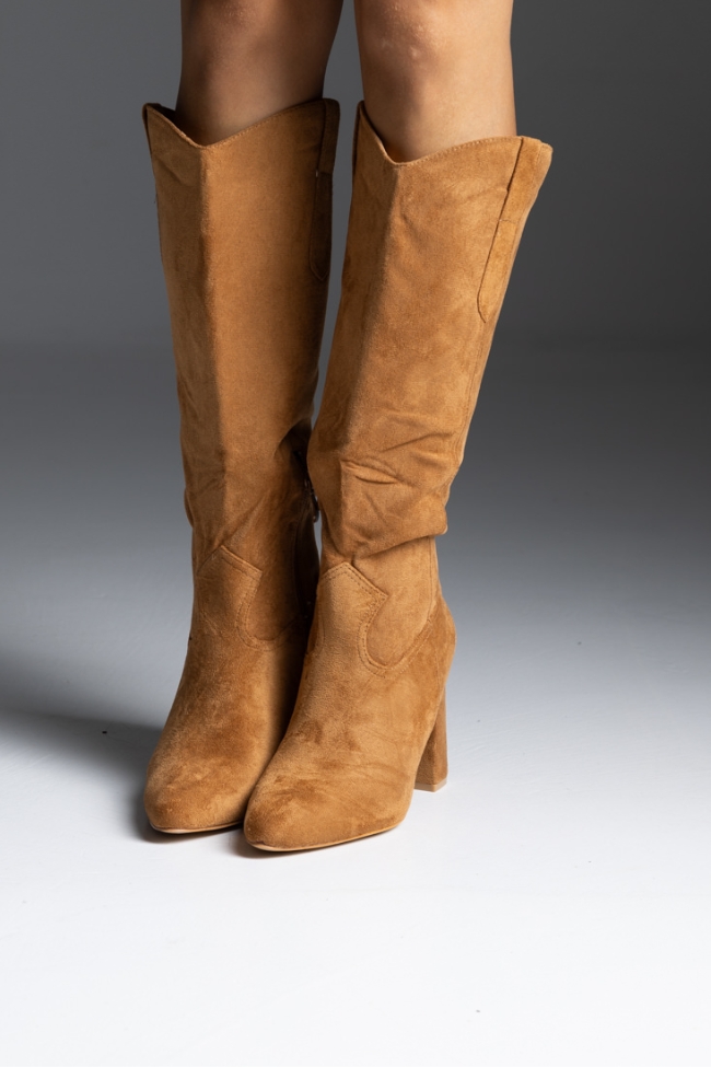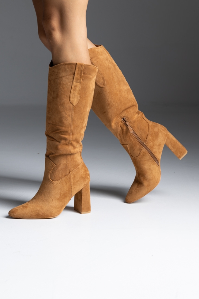 Μπότα suede με χοντρό τακούνι – Κάμελ