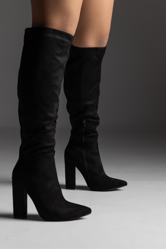 Μπότα suede με χοντρό τακούνι – Μαύρο