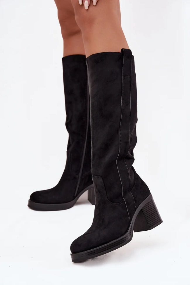 Μπότα suede με χοντρό τακούνι – Μαύρο