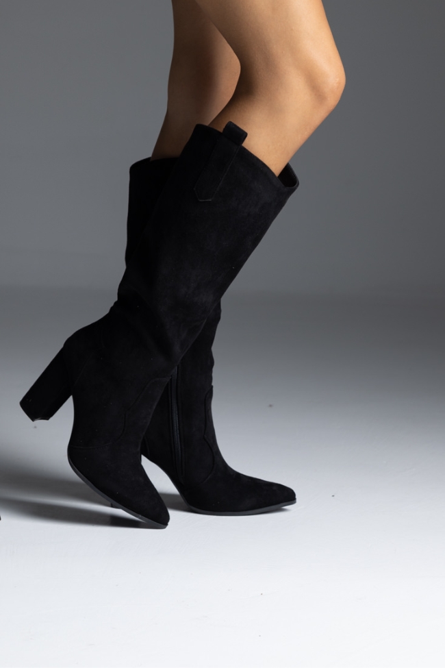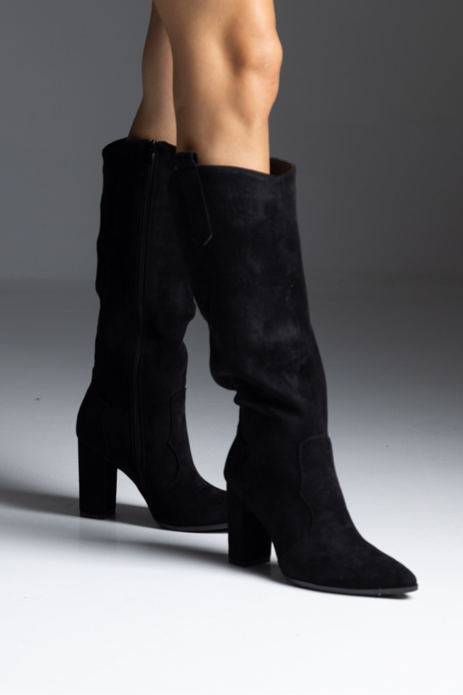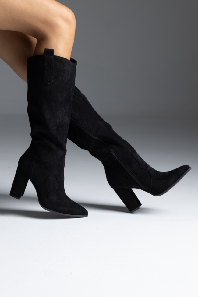 Μπότα suede με χοντρό τακούνι μυτερή – Μαύρο
