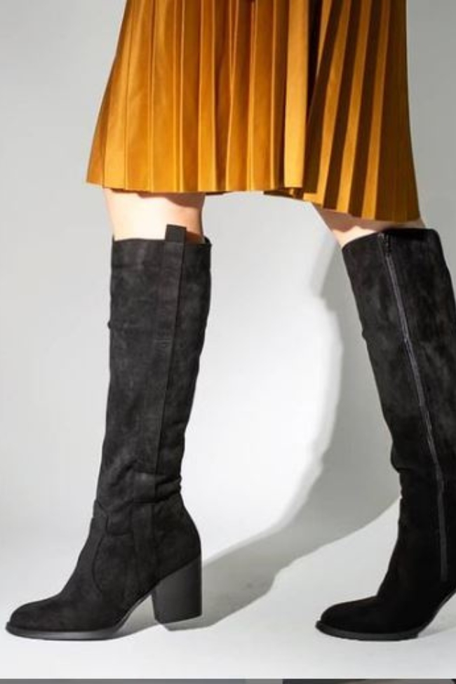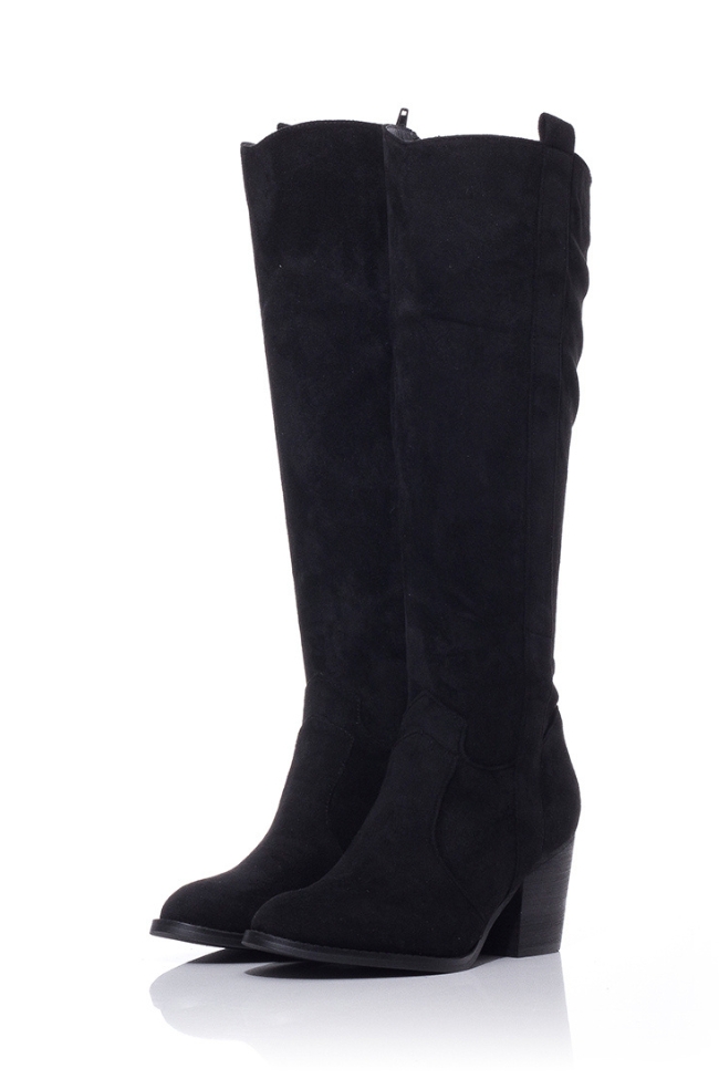 Μπότα suede με εσωτερικό φερμουάρ μέχρι πάνω – Μαύρο