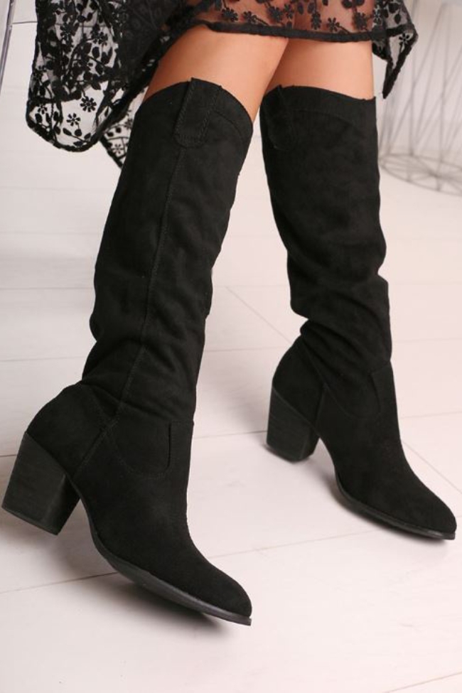 Μπότα Cowboy Suede – Μαύρο