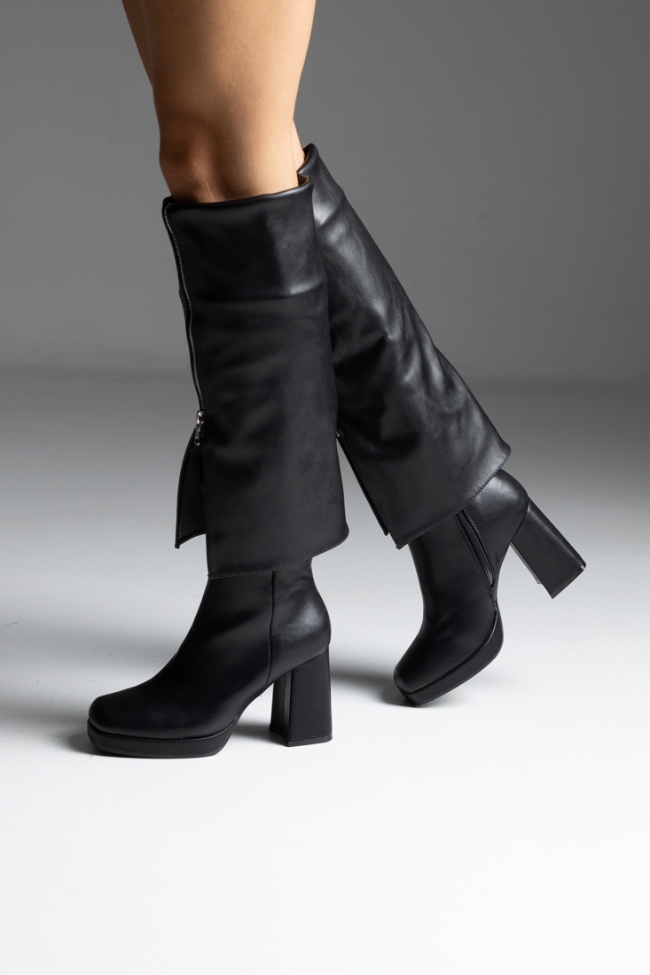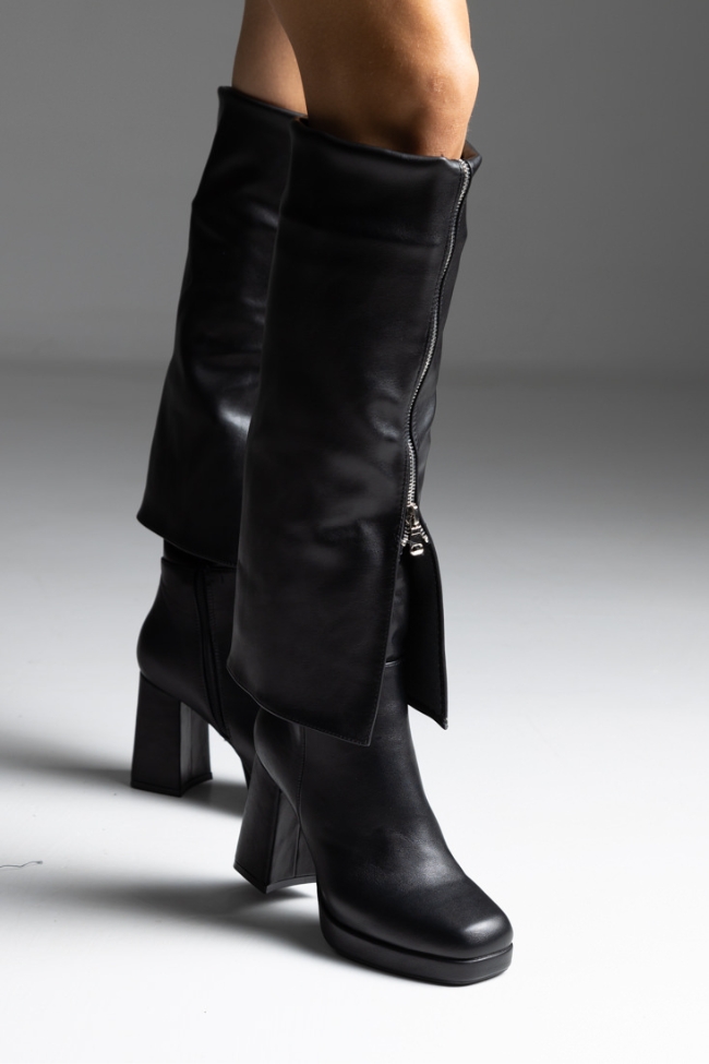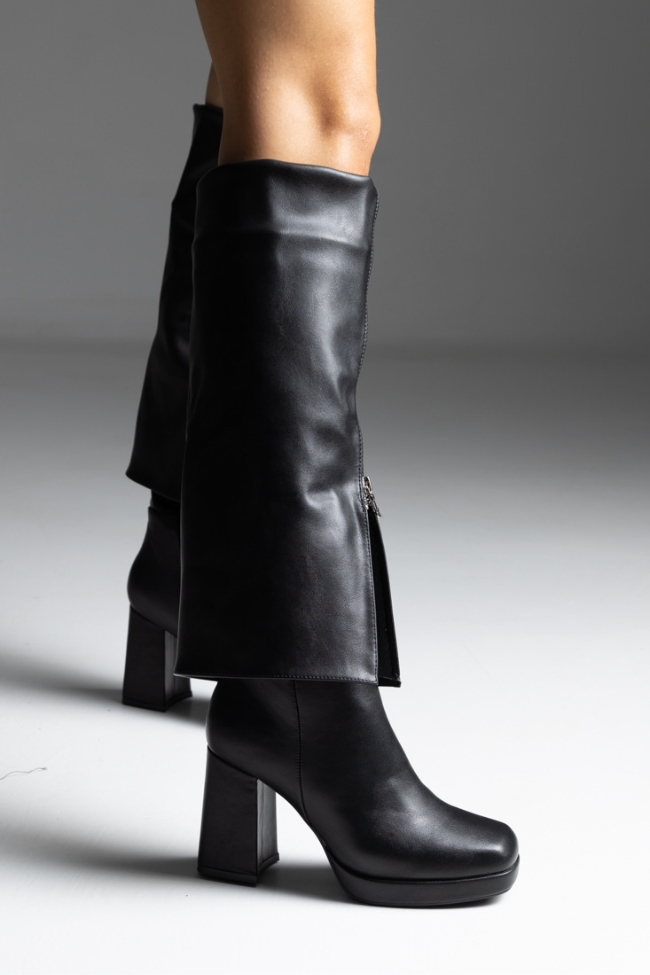 Μπότες με αναδιπλωμένη φάσα και φερμουάρ – Μαύρο