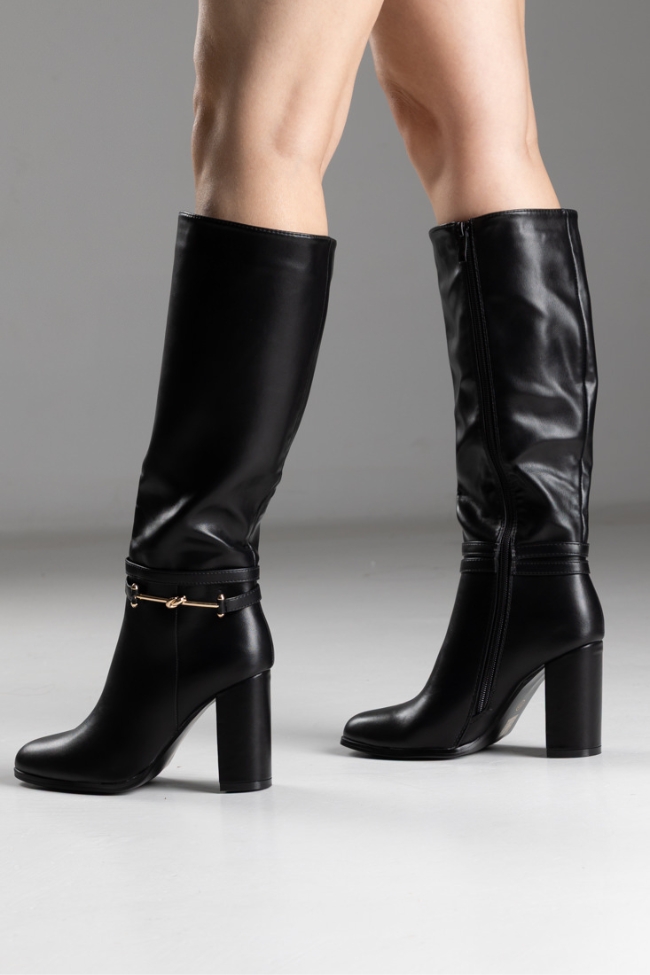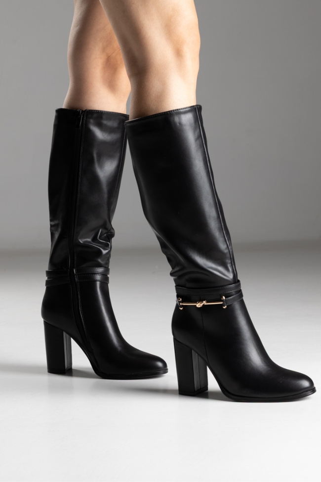 Ανακαλύψτε τις εντυπωσιακές μαύρες μπότες με διακοσμητική αγκράφα, ιδανικές για στυλάτες εμφανίσεις. Κατασκευασμένες από υψηλής ποιότητας υλικά, προσφέρουν άνεση και ανθεκτικότητα. Ένα απαραίτητο κομμάτι για την γκαρνταρόμπα σας που συνδυάζει κομψότητα και μοντέρνα αισθητική. Απογειώστε το στυλ σας με αυτήν την εκλεπτυσμένη επιλογή!