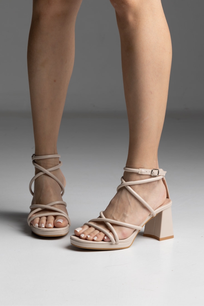 Πέδιλα με Πολλαπλά Λουράκια & Φιάπα – Μπέζ