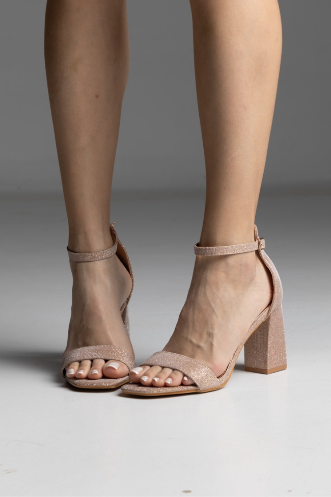 Πέδιλο με χοντρό τακούνι glitter – Σαμπανί