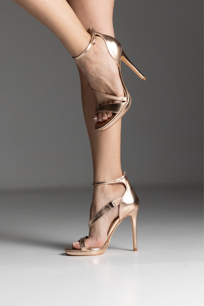 Πέδιλο με ψηλό λεπτό τακούνι και λουράκια – Σαμπανί