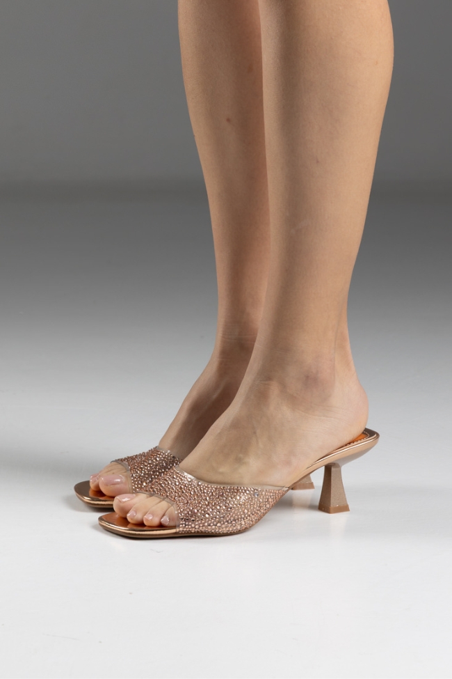 Πέδιλο mule με διαφάνεια και διακοσμητικά strass – Σιαμπανί