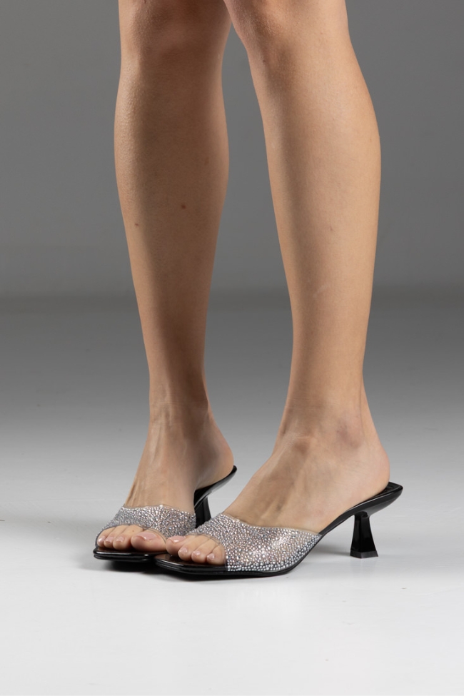 Πέδιλο mule με διαφάνεια και διακοσμητικά strass – Μαύρο