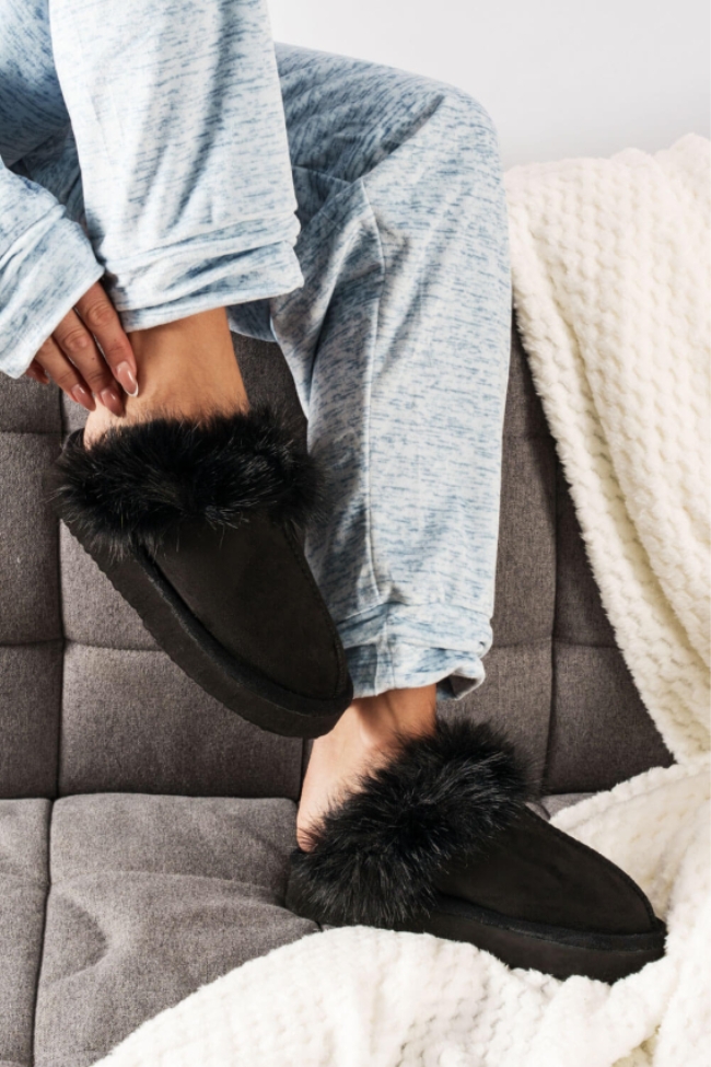Παντόφλες Γούνινες με Ράφη – Μαύρο