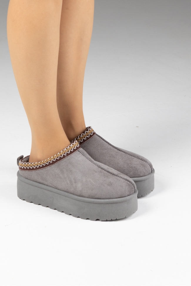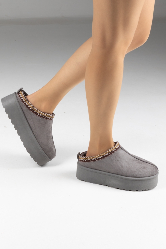 Παντόφλες Δίσολες με Κέντημα – Γκρί