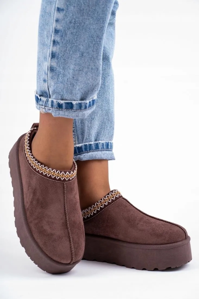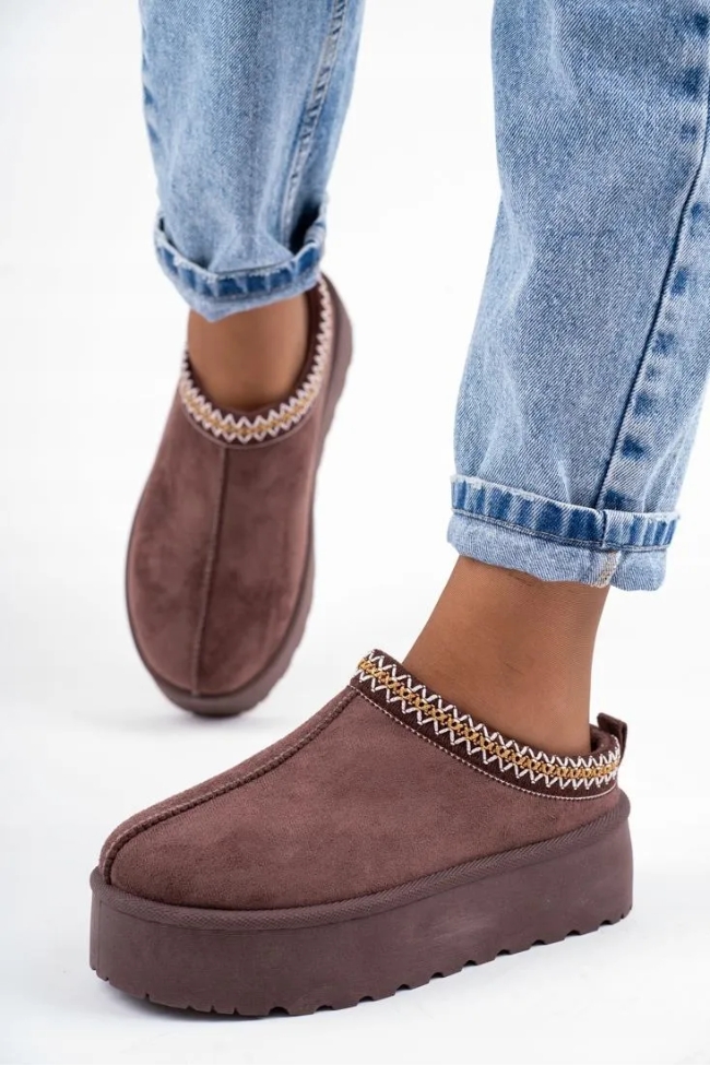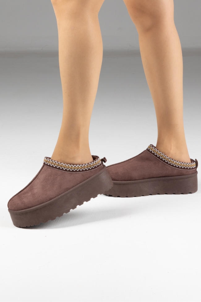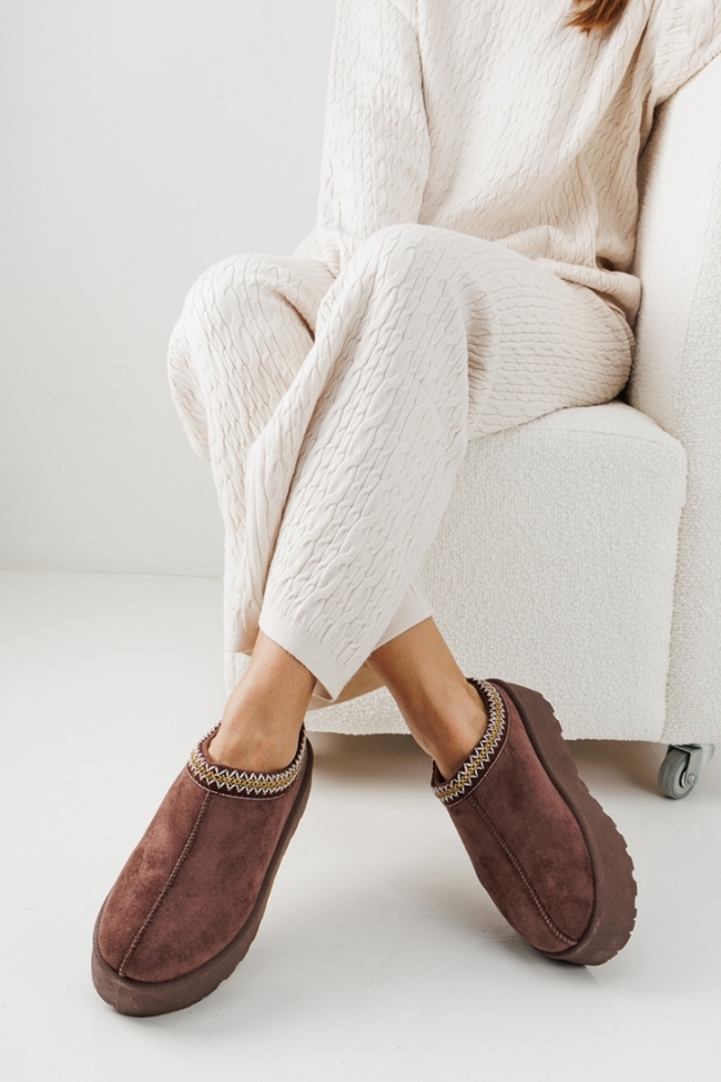 Παντόφλες Δίσολες με Κέντημα – Καφέ