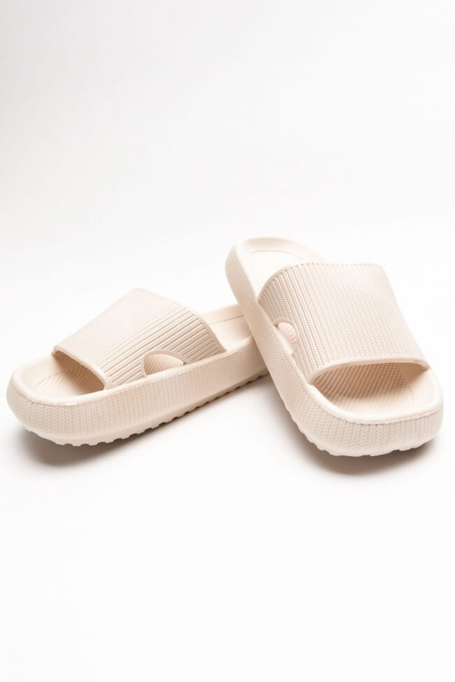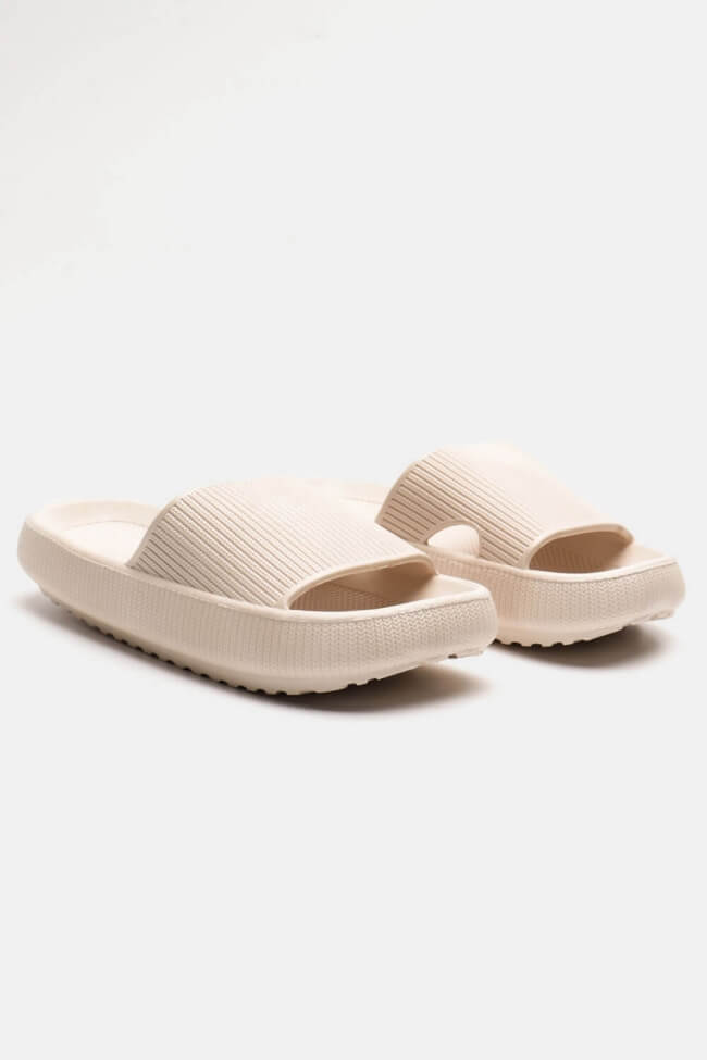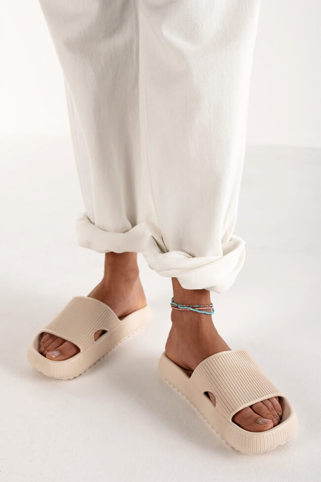 Παντόφλες με Φαρδιά Φάσα και Ανοιγμα- Mπεζ