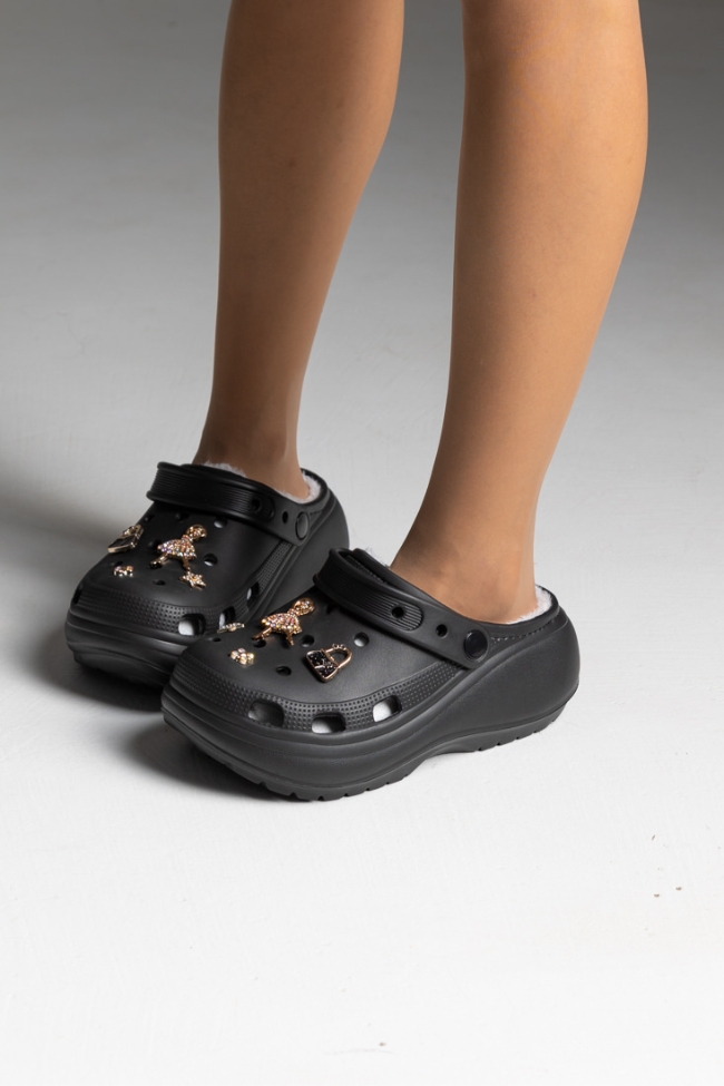 Γυναικεία σαμπό από καουτσούκ με ψηλό τρακτερωτό πάτο ,με διακοσμητικά charms με εσωτερική επένδυση γούνας.Ανακαλύψτε την απόλυτη άνεση και στυλ με αυτές τις παντόφλες! Ιδανικές για χαλάρωση, προσθέτουν μια πινελιά πολυτέλειας στις στιγμές σας στο σπίτι. Ζεστές και μαλακές, είναι η τέλεια επιλογή για μοδάτες γυναίκες που επιδιώκουν την υψηλή ποιότητα.