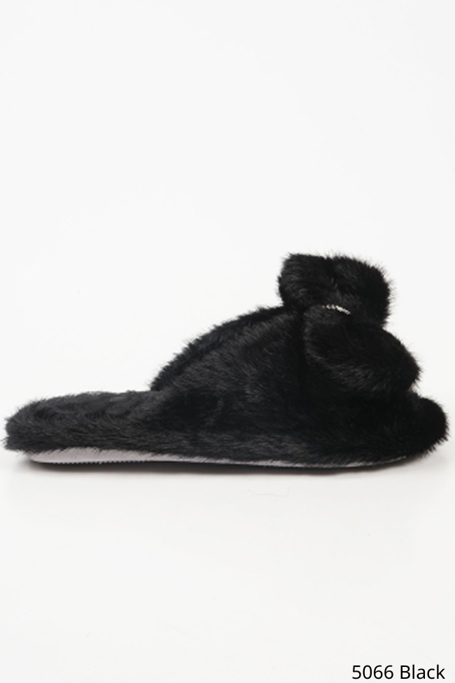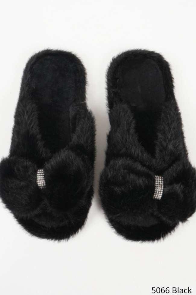 Παντόφλες με φιόγκο και strass – Μαύρο