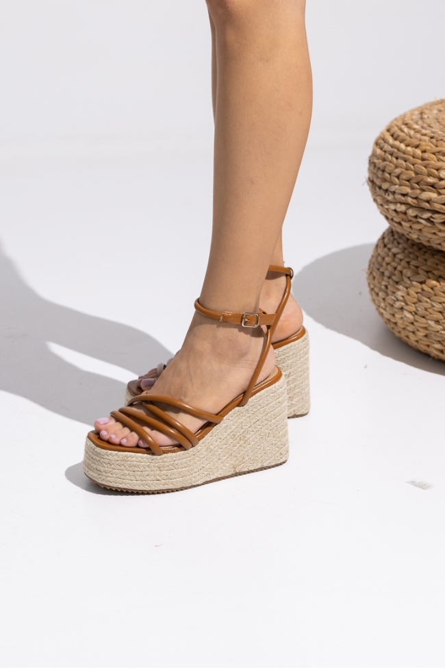 Πλατφόρμα με ψάθινο πάτο και λουριά – Κάμελ