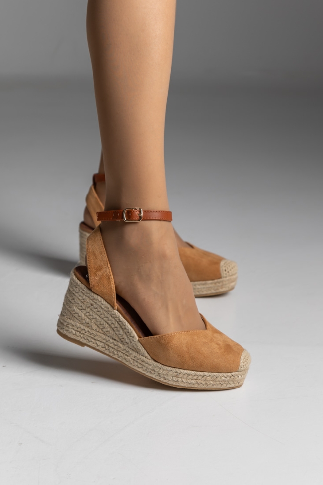 Πλατφόρμα espadrilles με δέσιμο στο πόδι – Κάμελ