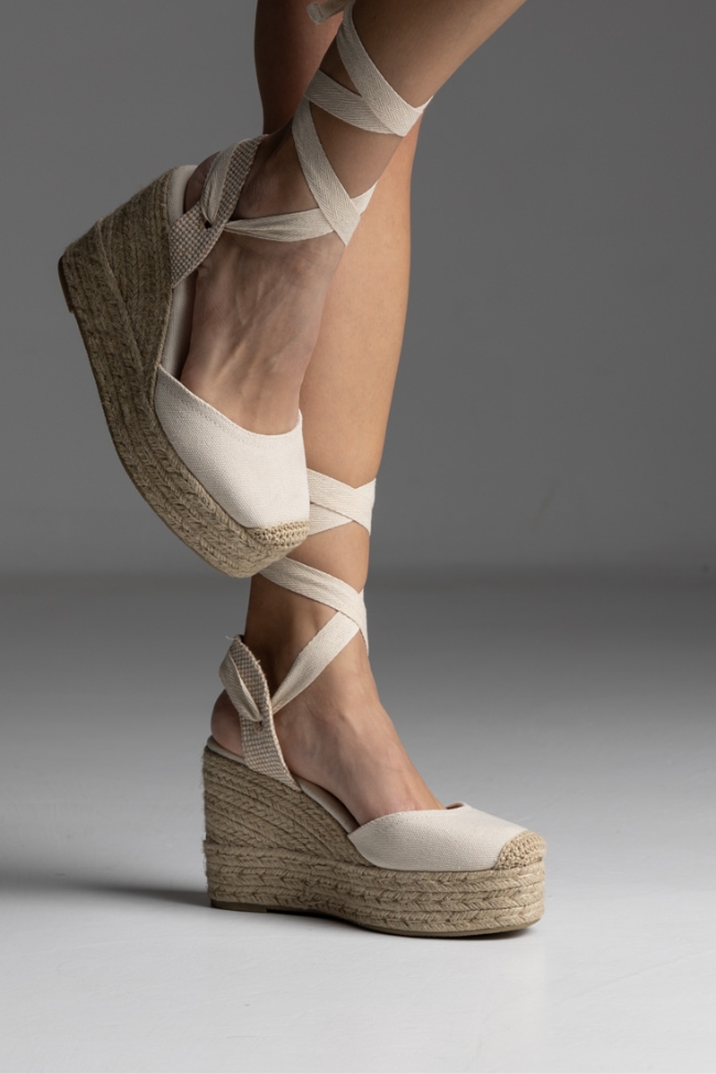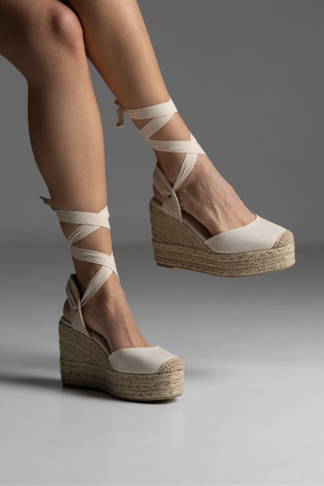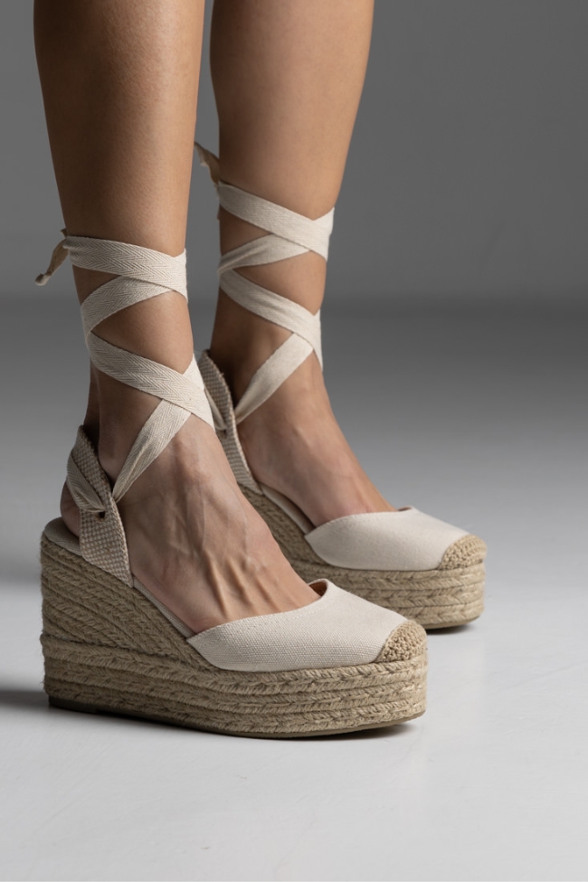 Πλατφόρμα espadrilles με κορδόνι για δέσιμο στο πόδι – Μπέζ