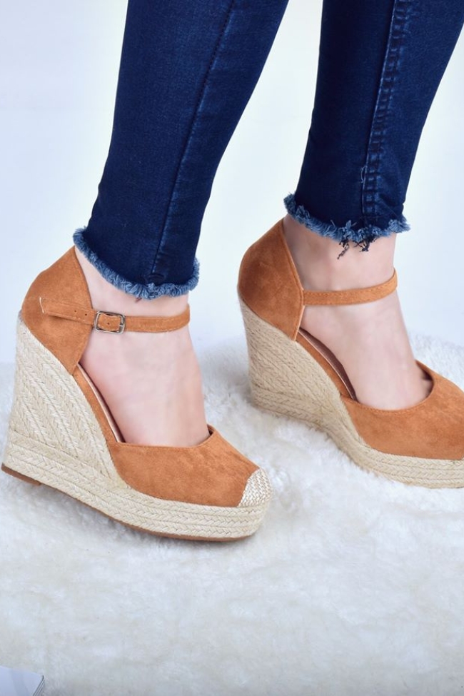Γυναικεία Πλατφορμά suede με λουράκι στο κουτεπιέ και με πάτο απο σκοινί.