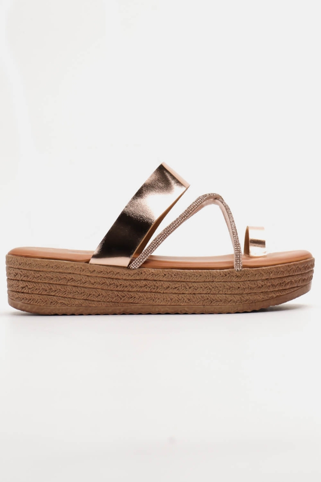 Πλατφόρμες παντόφλες με Χιαστί Λουριά απο Strass – Σαμπανί