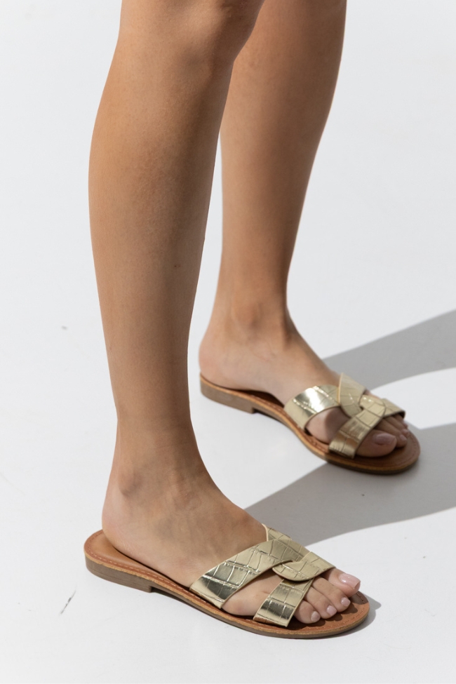 Σανδάλια με μαλακό πάτο και με λουράκι πλεγμένο κροκό στα δάχτυλα – Χρυσό