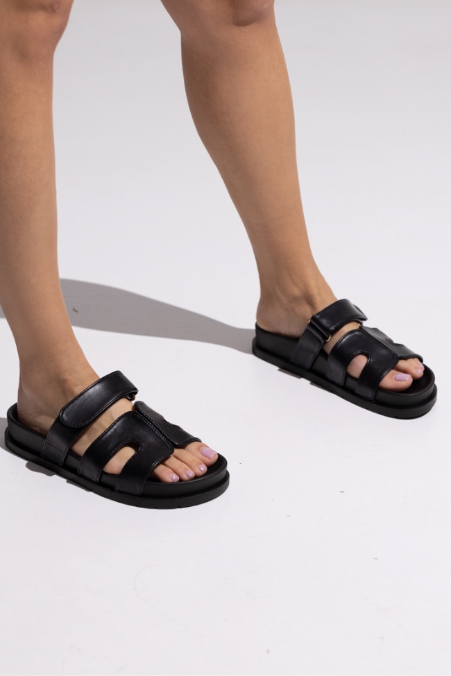 Σανδάλια Flatform δερματίνη με κούμπωμα στο μπροστά μέρος .