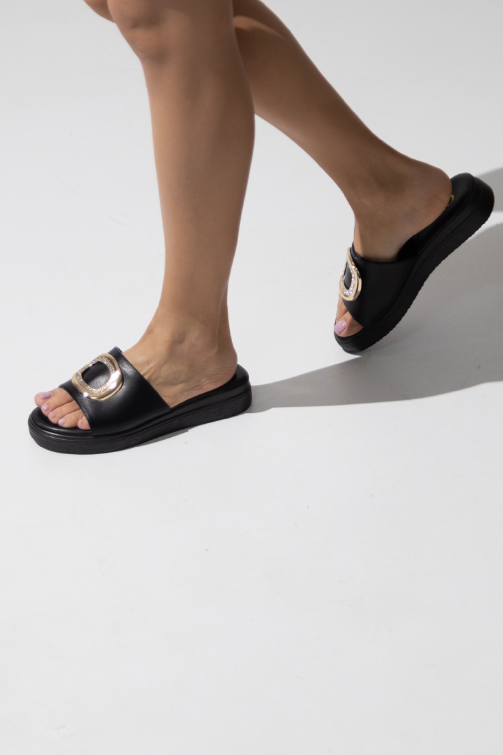 Σανδάλια Flatform δερματίνη με χρυσό στοιχείο – Μαύρο