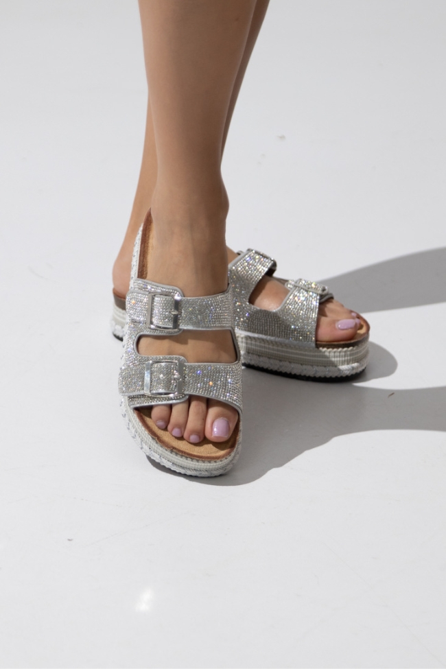 Σανδάλια Flatform με strass και διπλή αγκράφα .