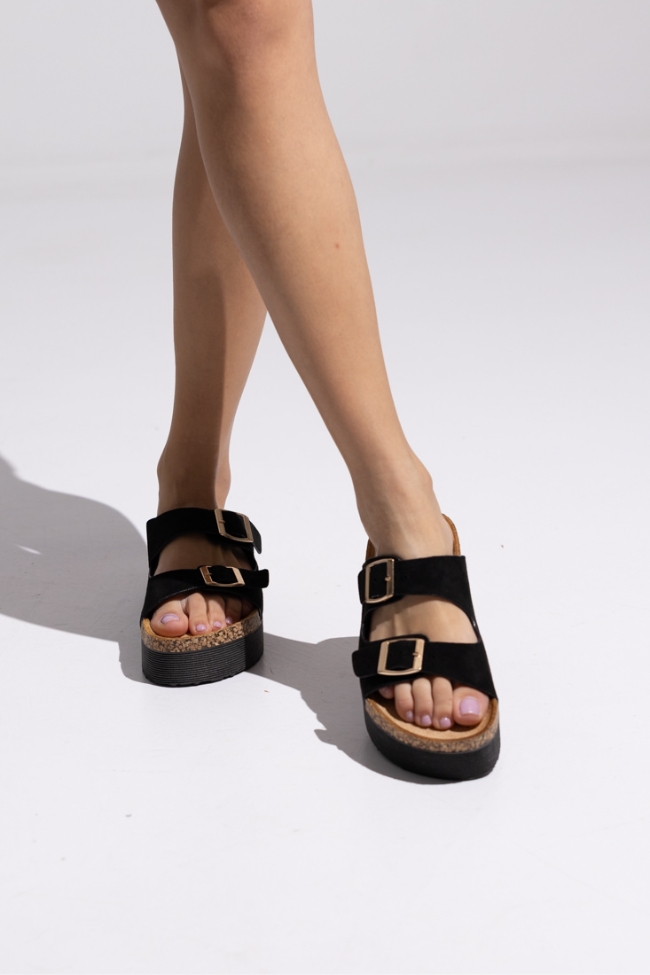 Flatform σανδάλια που απογειώνουν κάθε εμφάνιση! Η μαύρη σόλα χαρίζει urban αισθητική, ενώ τα διπλά λουράκια με χρυσά αγκράφα προσθέτουν δυναμικό χαρακτήρα. Με ρυθμιζόμενη εφαρμογή για τέλεια άνεση, ταιριάζουν ιδανικά με ψηλόμεσα σορτ. Ο πάτος ειναι πολύ μαλακός.Η αντιολισθητική σόλα εξασφαλίζει πρόσφυση σε κάθε επιφάνεια, κάνοντάς τες ιδανικές για καθημερινή χρήση. Ιδανική επιλογή για casual chic εμφανίσεις που συνδυάζουν ποιότητα και στυλ.