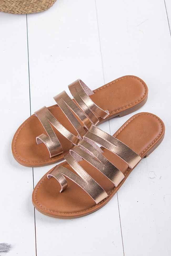 Παντόφλες flat δερματίνη λουράκια λεπτά – Σιαμπανί